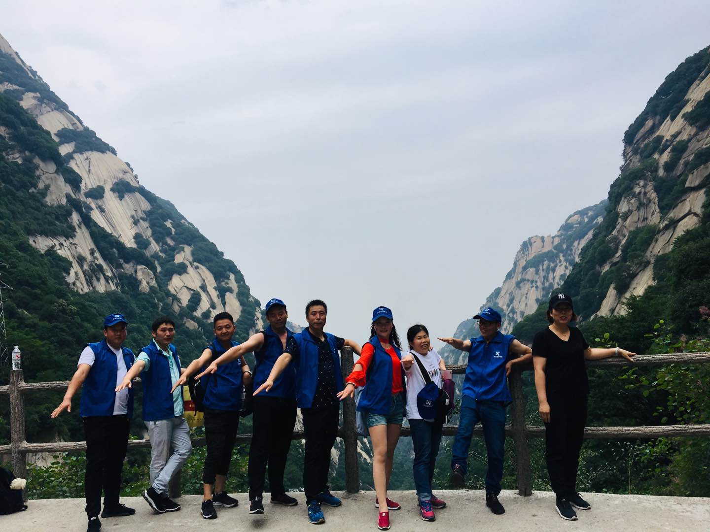 2019年6月15日早上九點半,商洛菱通電梯工程有限公司,一行九人從商州整裝出發(fā),盤山越嶺自駕行駛了兩個多小時的路程,終于抵達華山腳下。稍作休息在山下用過午餐,已經(jīng)是下午兩點多了,我們備足食物和水,準備登山之旅。這天天氣還算不錯,沒有艷陽高照,也沒有陰云密布,給人一種神清氣爽的登山條件。一路上同志們互幫互助堅持不懈,經(jīng)歷了千尺幢、百尺峽幾個比較險峻的路段,克服了一切艱難險阻。用了五個多小時終于到達了華山北峰,我們在北峰稍作停留拍照留念,之后繼續(xù)向中峰和東峰前進,雖然中途有下過雨,但是老天也算沒辜負我們的期望。沒影響我們看當天的日落。我們最終在晚上九點多抵達東峰,大家已是筋疲力盡汗流浹背了,領(lǐng)導(dǎo)決定在東峰簡單用餐后休息一晚,第二天去登南峰和西峰,晚上大家睡得可香了。