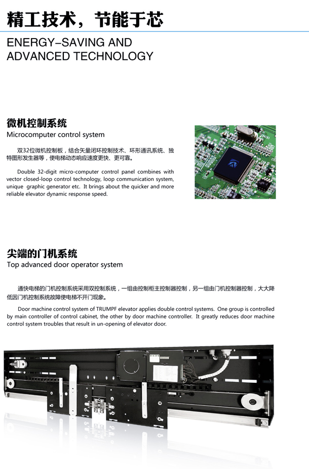 商洛菱通所提供產(chǎn)品的三大核心部件-“主機”、“門機”和“控制柜”以及四大安全部件-“安全鉗、“限速器”、緩沖器、"上行超速保護"均原廠原品牌并自主知識產(chǎn)權(quán)和專利技術(shù)。電梯加裝采用四大節(jié)能系統(tǒng),即能量回饋系統(tǒng)、永磁同步門機、無齒輪技術(shù)、LED照明系統(tǒng)、安全系統(tǒng)成熟。